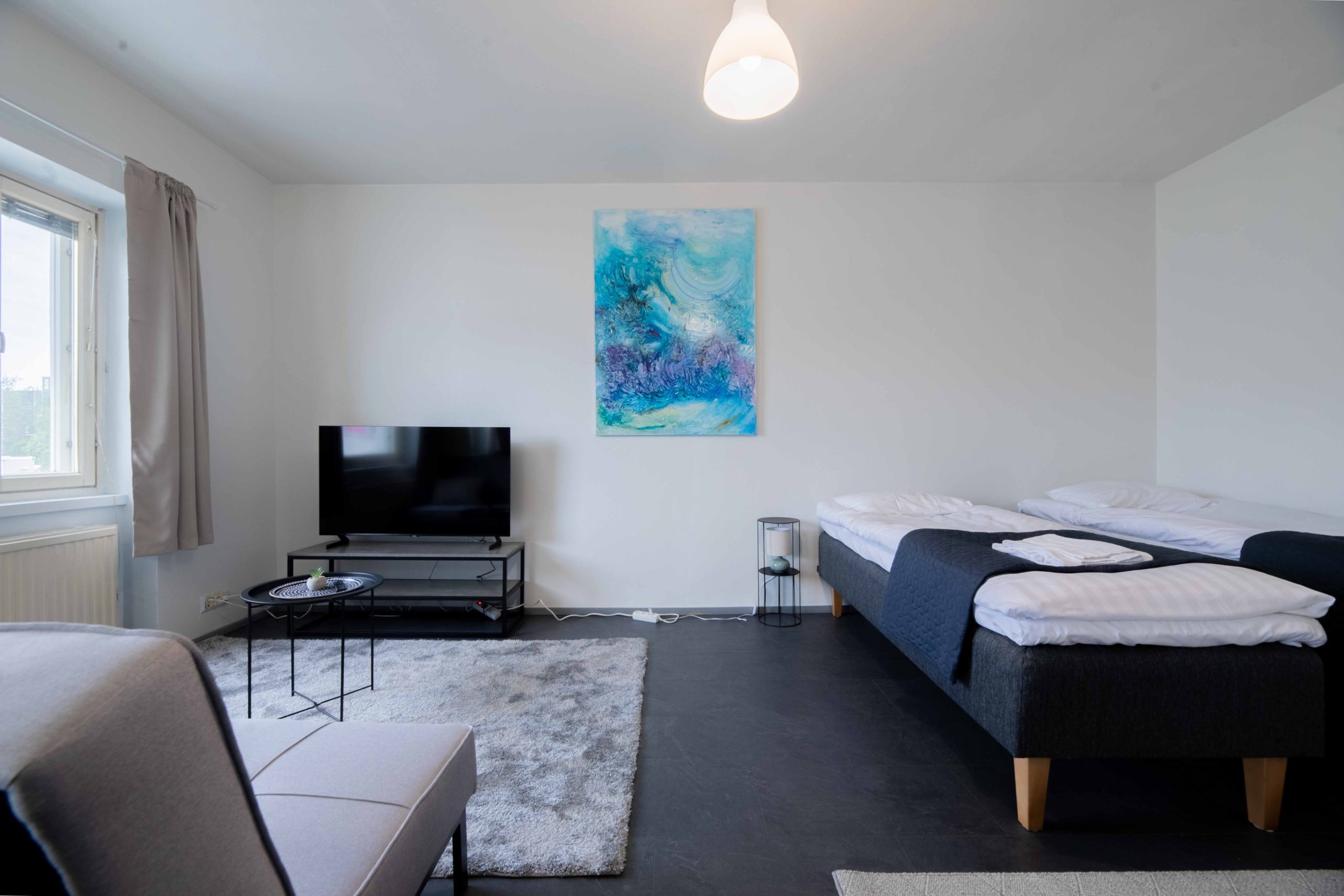 Wszystkie apartamenty Vuokrakaista są Umeblowane i zaprojektowany z myślą o komfortowym życiu. Oznacza to, że nie musisz martwić się o meble, naczynia czy sprzęty AGD – wszystko jest gotowe.